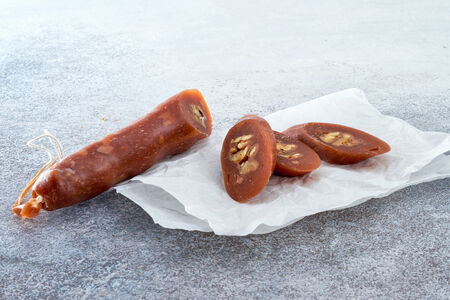 Приготовлено по старинному грузинскому рецепту из виноградного сока и орехов. 1 шт.