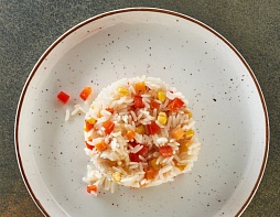 Отварной рис с добавлением кукурузы, горошка и перца болгарского