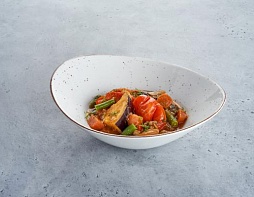 Овощное рагу из баклажанов, болгарского перца, томатов, стручковой фасоли, репчатого лука, чеснока и зелени