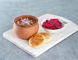 Фасоль красная, кукурузные лепешки, капуста по-грузински