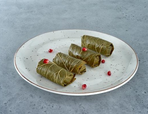 Виноградные листья, фаршированные рубленной свининой и говядиной, с чесночным соусом