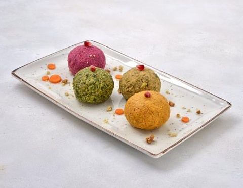 Нежные биточки из шпината и моркови, свеклы и фасоли с добавлением грецких орехов и грузинских специй