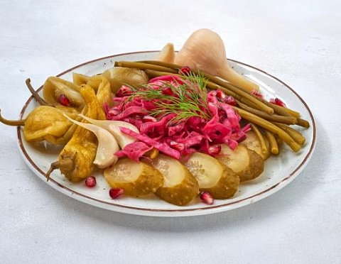 Капуста маринованная, огурцы соленые, томаты соленые, чеснок соленый, черемша